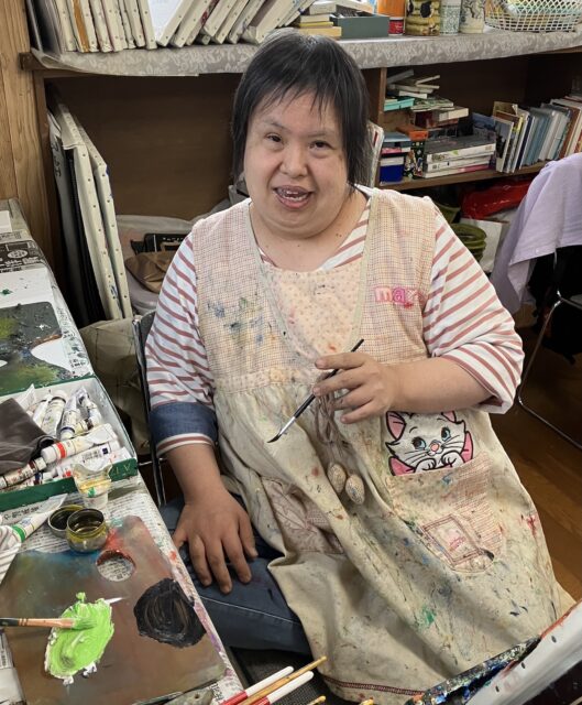 1979年生まれ。1986年アトリエ・ウーフ(京都市)が開設当初の6歳から通い始め、10代から油絵を始め、17歳で個展デビューを果たす。