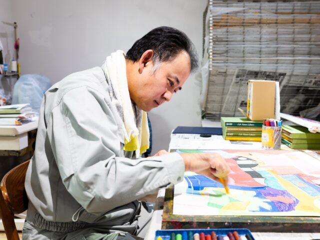 1976年生まれ。すずかけ作業所(西宮市)の絵画クラブで30年以上制作を続け、現在は2ヶ月に1回のペースで制作を行なっている。